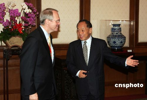中國(guó)外交部長(zhǎng)李肇星七月二十五日在北京釣魚(yú)臺(tái)國(guó)賓館會(huì)見(jiàn)并宴請(qǐng)前來(lái)出席朝核問(wèn)題六方會(huì)談的美國(guó)國(guó)務(wù)院助理國(guó)務(wù)卿希爾。作者:毛建軍