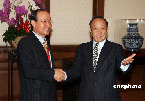 中國(guó)外交部長(zhǎng)李肇星會(huì)見(jiàn)并宴請(qǐng)前來(lái)出席朝核問(wèn)題六方會(huì)談的韓國(guó)外交通商部次官補(bǔ)宋旻淳。作者:毛建軍