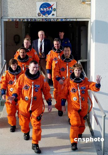 中新網(wǎng)洛杉磯七月二十六日電(記者賈國(guó)榮)據(jù)美國(guó)宇航局的實(shí)況轉(zhuǎn)播畫面,航天飛機(jī)“發(fā)現(xiàn)號(hào)”機(jī)組人員在二十六日早上六時(shí)四十九分,在肯尼迪航天中心從指揮部和終檢大樓出發(fā)往發(fā)射架。