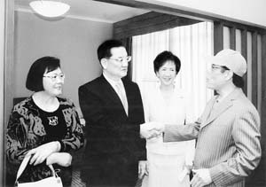 當(dāng)天下午5時(shí)左右,楊先生又打來(lái)電話,告知連戰(zhàn)辦公室主任丁遠(yuǎn)超先生和他自己將代表連主席到府上回訪。因?yàn)楫?dāng)晚連主席一行到老舍茶館看演出,丁楊二位先生直到夜里12時(shí)30分才來(lái)到我家,他們不僅帶來(lái)了連主席的問(wèn)候,還帶來(lái)了連主席贈(zèng)送的禮品。