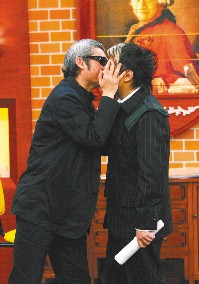 中新網(wǎng)7月28日電 據(jù)臺(tái)灣媒體報(bào)道,大導(dǎo)演徐克竟跟蔡康永棚內(nèi)玩親親?原來是導(dǎo)演被要求示范教戲,完全是借位,沒碰到!