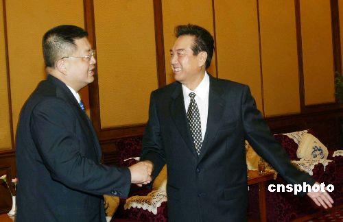 七月二十八日,中共中央臺辦主任陳云林在北京釣魚臺賓館會見由中國國民黨“立法院”黨團書記長陳杰率領(lǐng)的兩岸工作事務(wù)訪問團。該團來京主要就推動臺灣水果零關(guān)稅登陸與有關(guān)方面交換意見。作者:史利