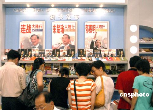 七月三十日,在廈門舉行的海峽兩岸圖書交易會上,《連戰(zhàn)大陸行紀實》、《宋楚瑜大陸行紀實》、《郁慕明大陸行紀實》三本新書一發(fā)布就受到市民的廣泛關(guān)注。作者:王東明