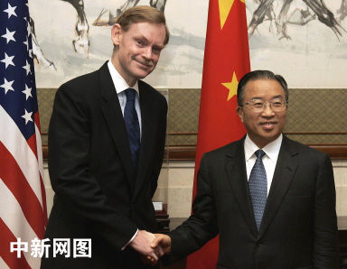 中美首輪高層對(duì)話于8月1日在北京釣魚臺(tái)國(guó)賓館舉行,中國(guó)外交部副部長(zhǎng)戴秉國(guó)與美國(guó)常務(wù)副國(guó)務(wù)卿佐利克握手。