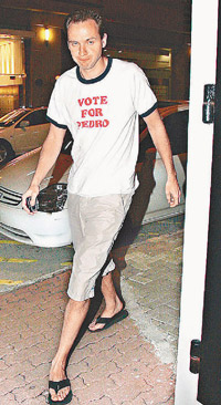 另一邊,“老外新歡”于前晚九時(shí)左右,由所住大廈的走火通道極速步出,然后截的士離去,守候記者未能跟上,傳媒猜測他會否到半島酒店會合柏芝,不過“老外”所乘之的士后來折返兜客,司機(jī)向記者透露“老外”于中環(huán)云咸街下車,至十時(shí)四十分,一身街坊look,穿上T恤短褲配拖鞋的“老外”由正門步行回家,他回家時(shí)間與柏芝極為合拍,面對傳媒拍照他亦神態(tài)自若,還與管理員以普通話打招呼,難怪他可以當(dāng)柏芝的英文老師!不過記者問他:“同柏芝談戀愛多久了?”他卻不發(fā)一言就急步入大廈。昨晚七時(shí),他召了部的士由寓所出發(fā)往機(jī)場,沿途欲擺脫記者追訪不果,抵達(dá)機(jī)場后,記者問他是否跟柏芝一同出埠及去哪?他一概不回應(yīng)就入閘離開。但柏芝經(jīng)理人表示柏芝人在香港,在家中休息。