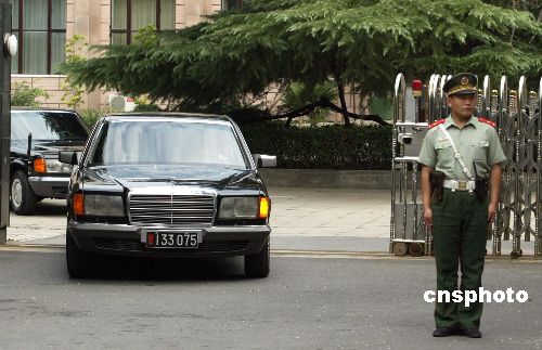 八月四日,正在北京舉行的第四輪六方會談進(jìn)入第十天。圖為朝鮮代表團(tuán)團(tuán)長金桂冠的車輛離開大使館前往釣魚臺國賓館。作者:廖文靜