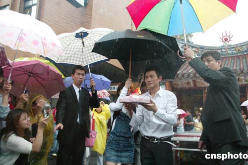 原來每次華仔到臺灣宣傳唱片時(shí),都會(huì)遇上大風(fēng)雨,華仔說:“水為財(cái)嘛,每次我宣傳下雨,唱片都會(huì)賣得好好,這次都希望過百萬啦。只有三年前我打官司不能出唱片時(shí),那次就是唯一一次沒下雨!