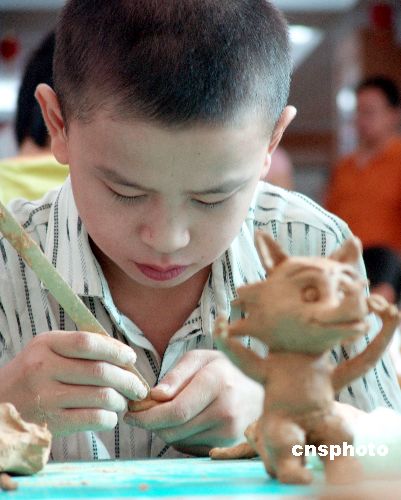 | 8月5日,由湖南省邵陽市團委、人豪美術(shù)雕塑學(xué)校等單位發(fā)起的“遠(yuǎn)離網(wǎng)吧玩泥巴”大型泥巴雕塑活動在該市新華書店讀者俱樂部舉行,全市300多名中小學(xué)生免費參加了培訓(xùn)和實踐。他們度過了暑假中愉快而有意義的一天。作者:呂建設(shè)