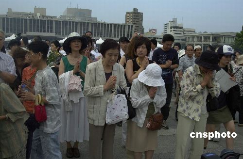 八月六日一大早,眾多日本廣島市民紛紛來到留有原子彈爆炸遺址的和平紀(jì)念公園,悼念當(dāng)年原子彈爆炸中的死難者。六十年前的這個(gè)日子,廣島遭受了人類歷史上第一枚原子彈襲擊。作者:王健