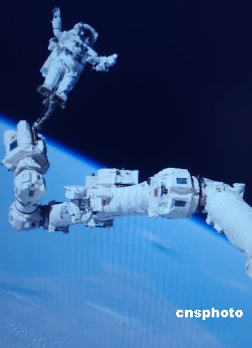 八月七日在“發(fā)現(xiàn)”號(hào)航天飛機(jī)告別國際空間站向著地球返航時(shí),美國航空航天局(NASA)播發(fā)了精彩照片回顧:技高膽大的宇航員羅賓遜完成太空行走,站在機(jī)械臂頂端如太空雜技演員。作者:賈國榮(翻拍)