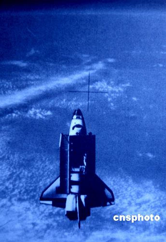 圖:發(fā)現(xiàn)號(hào)航天飛機(jī)向地球家園圍繞飛行
