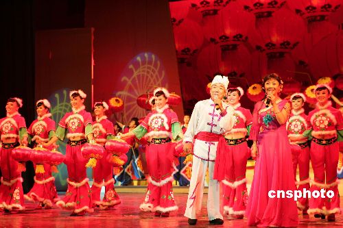 八月六日晚,山西太原舉行紀(jì)念中國(guó)人民抗日戰(zhàn)爭(zhēng)暨世界反法西斯戰(zhàn)爭(zhēng)勝利六十周年山西民歌演唱會(huì)《在太行山上》。來自山西省內(nèi)各地的藝術(shù)家及民間歌手會(huì)聚一堂,用山西人最熟悉的音樂一路牽引人民的思緒,重回六十年前的那段光輝歲月。圖為民歌《掛紅燈》。作者:張?jiān)?/p>