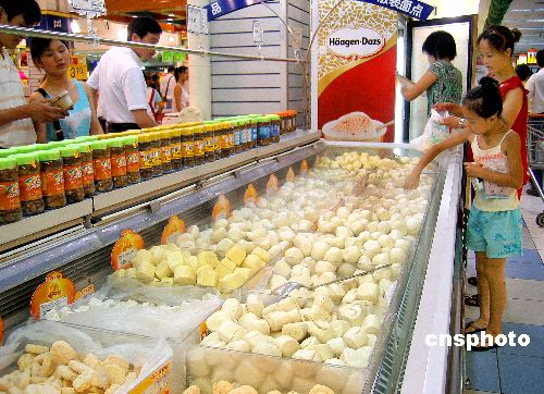 | 8月7日,中國(guó)食品科學(xué)技術(shù)學(xué)會(huì)專家委員會(huì)委員、天津商學(xué)院食品工程系教授張坤生近日指出,散裝速凍食品存在明顯的安全隱患。散裝銷售,無(wú)論是在銷售人員拆除大包裝散賣時(shí),還是顧客挑選過(guò)程中,都不可避免人與食品的接觸,造成細(xì)菌污染;而散裝食品與空氣接觸面積大,還會(huì)造成水分蒸發(fā)、產(chǎn)品干裂與油脂的氧化、酸敗等現(xiàn)象,同時(shí)空氣中存在的微生物、病毒等很可能污染食物,導(dǎo)致食用不安全。圖為顧客在超市選購(gòu)散裝速凍食品。作者:張和平