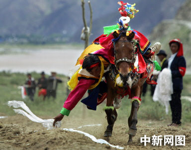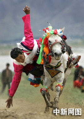 圖:西藏牧民在薩拉鎮(zhèn)舉行騎術(shù)比賽