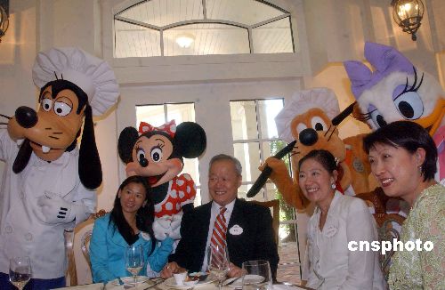 香港迪斯尼樂(lè)園市務(wù)及銷售副總裁陳敬考(中)9日表示,樂(lè)園內(nèi)有兩間酒店,房間預(yù)訂情況理想,其中在一些特別日子,例如中秋節(jié),房間預(yù)訂已超過(guò)五成。作者:譚達(dá)明