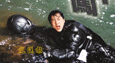 此外,電影公司更斥資近百萬,租借了一部最新型號(hào)的直升機(jī)作為拍攝道具及支援用途,而該部直升機(jī)是專程從美國(guó)軍事基地租借回來。至于成龍?zhí)俨紩r(shí)所穿的灰黑色盔甲,乃出自服裝設(shè)計(jì)師莊志良手筆,價(jià)值一萬美元,為了令盔甲表現(xiàn)到成龍的最合適身形,需先度出成龍每處身材的確實(shí)尺寸,再以近乎倒模方法,套上金屬材料逐寸拷打出來。而盔甲手臂部分所用富彈性防水物料,是向美國(guó)訂制,可制造最大浮力讓成龍浮在水面,以減低意外發(fā)生的機(jī)會(huì)。