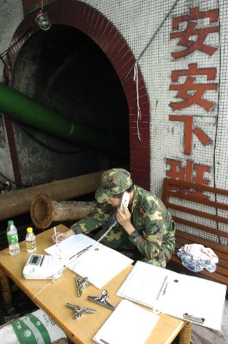 廣東興寧透水礦井十日加緊進(jìn)行抽水作業(yè)。需要三十個小時才能裝好的大功率潛水泵,經(jīng)工作人員的連續(xù)奮戰(zhàn),提前十四小時安裝完畢,于十日凌晨一次啟動成功,目前井下水位以每小時一米的速度下降。圖為大功率潛水泵供電的大電纜每隔一段時間就要用水淋灑降溫。作者:羅仰明