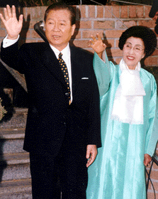 1998年2月至2003年2月?lián)雾n國(guó)總統(tǒng)。2000年1月,他領(lǐng)導(dǎo)的新政治國(guó)民會(huì)議與新千年民主黨合并,任該黨總裁。