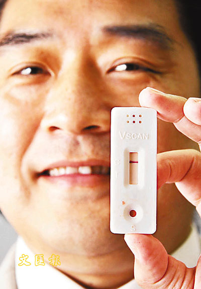 天智集團(tuán)副總裁蔣凌輝說,VScan愛滋病檢驗(yàn)器是一套自助的愛滋病抗體測試器,由美國研制成功,已完成了美國FDA的所有測試。這套測試器能有效測出HIV1及HIV2的抗原,以及初期出現(xiàn)的抗體IGM,而所有的測試結(jié)果會(huì)在15分鐘完成。