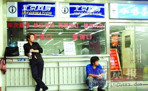 不少旅客走到窗口,見沒(méi)有人就匆匆離去。該男子說(shuō),早上8時(shí)30分左右,該查詢口就被停止?fàn)I業(yè),他不清楚責(zé)令其停業(yè)的部門。一名西站的保安也證實(shí),“北京向?qū)А辈樵兛谝驯煌I(yè)。