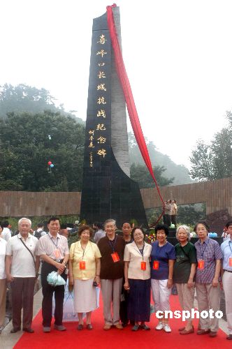 | 8月12日,“長城抗戰(zhàn)紀念碑”揭幕儀式在河北遷西縣喜峰口老婆山下舉行,以紀念1933年春長城抗戰(zhàn)和國民革命軍二十九軍將士無畏犧牲的民族愛國精神。圖為長城抗戰(zhàn)將領蔣光鼐之子蔣建國(左一)、趙登禹之女趙學芬(左三〉、佟麟閣之子佟兵(左四〉、李濟深之女李筱桐(左五〉丶何基灃之女何玟〈左六〉、于學忠之女于允賢〈左七〉、馮冶安之女馮炳如〈左八),以貴賓身份參加儀式。作者:鄒憲