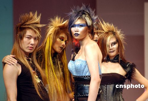 2005威娜之夏發(fā)型秀八月十二日在北京舉行,眾多發(fā)型師與模特現(xiàn)場向追逐時代潮流的觀眾演繹“新奇古怪”的時尚發(fā)型。作者:張宇