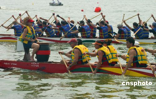 圖:“洋人”熱衷紐約第十五屆龍舟節(jié)