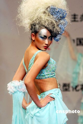 2006中國發(fā)型化妝潮流趨勢發(fā)布會8月14日在北京舉行,模特展示的化妝造型以“歡顔、影舞、暗香、幻想”為主題,展現(xiàn)女性的不同氣質(zhì)。一年一度的潮流趨勢發(fā)布由中國發(fā)型化妝藝術(shù)研創(chuàng)中心創(chuàng)作演出。作者:張宇