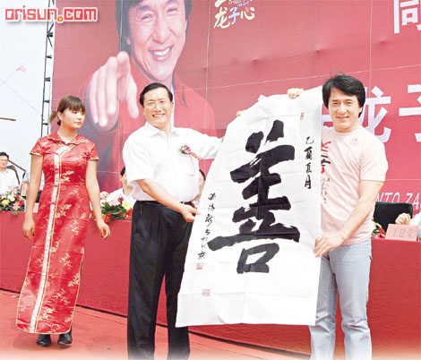 在主持奠基儀式的時候,成龍竟一度眼泛淚光。儀式期間,有一位小妹妹沖破公安人墻,趨前欲向成龍索取簽名,但遭工作人員阻攔,成龍見狀即發(fā)揮愛心,自愿替該女孩在背部簽名。