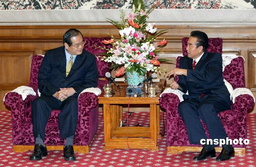 八月十六日,國務(wù)院臺灣事務(wù)辦公室主任陳云林在北京會見由國民黨中央政策會執(zhí)行長曾永權(quán)率領(lǐng)的“兩岸客貨運包機促進訪問團”一行。作者:廖文靜