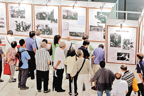 在展覽會揭幕首天,香港行政長官曾蔭權、中央駐港聯(lián)絡辦主任高祀仁及全國人大常委曾憲梓等政界要人來到會場,與五百位香港各界人士一起回眸歷史,感受六十年前中國人民打勝仗,洗刷百年恥辱的喜悅。