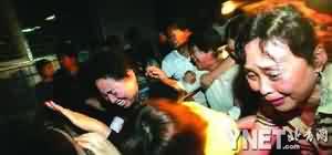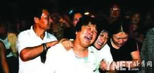 20時(shí)25分,高秀敏的遺體被家人抬上了靈車,黃色單子上“流芳千古”的字樣分外地讓人感傷。漆黑的小道,靈車緩緩而行……幾名年輕的女孩拼盡了氣力,低著頭往人群中擠,引起了人群的騷動(dòng)和指責(zé)!扒笄竽,讓我們進(jìn)去吧,我們是她的學(xué)生,要看老師最后一眼”,一個(gè)小女孩帶著哭腔的話讓人群向后閃開,幾個(gè)女孩扶著靈車淚流滿面,其中一個(gè)還雙手合十,低聲為已逝的恩師祈福。