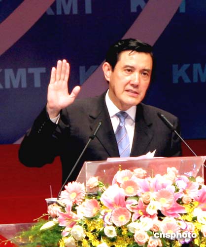 當(dāng)?shù)貢r(shí)間十九日上午,馬英九在中國(guó)國(guó)民黨第十七次代表大會(huì)上就任新一任黨主席。作者:趙海燕