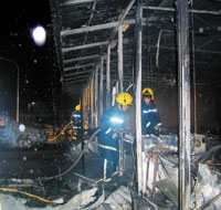 滅火過程中,外勞仍不斷攻擊戒備警員,部分警車遭砸毀。消防車滅火后留守現(xiàn)場也遭波擊。警方于凌晨零時30分決定撤離所有人車,退到廠房圍籬外,并緊急征調暴動警力支持。