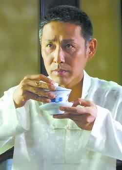 漫長(zhǎng)的染發(fā)過(guò)程之后,陳道明親自從上海專門(mén)訂做的幾十件真絲印花唐裝里,很快挑選了一套白色套裝。換上衣服后,他左手持鑲金梨木拐杖,右手搖著寫(xiě)有“蘭亭”二字的折扇,向在場(chǎng)的劇組工作人員展現(xiàn)了他精心設(shè)計(jì)的花白發(fā)、瘸腿新造型。