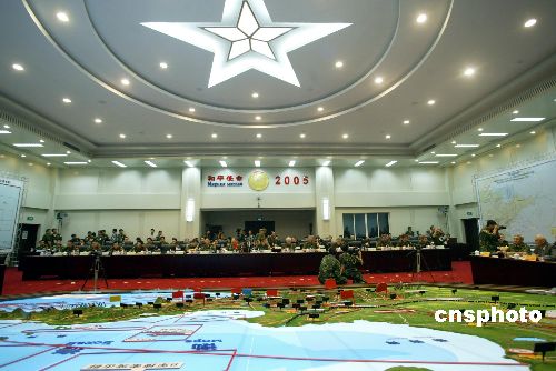 8月22日,中俄軍事演習(xí)指揮大廳正在進(jìn)行最后的戰(zhàn)役部署工作。23日將開始軍事演習(xí)第三階段——戰(zhàn)術(shù)實(shí)施階段的演習(xí)。圖為中俄聯(lián)合軍事演習(xí)指揮大廳的工作場景。作者:王麗南