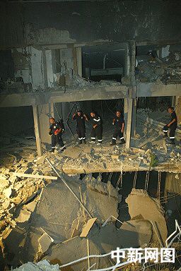 目擊者說,購(gòu)物中心的屋頂被炸彈掀翻,鄰近購(gòu)物中心的一家酒店和一棟銀行寫字樓也遭到嚴(yán)重破壞。
