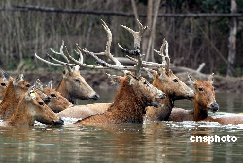 八月二十三日,北京麋鹿生態(tài)實驗中心內的麋鹿在悠閑地在水中乘涼。麋鹿作為國家一級保護動物,世界“受危級”物種,曾僅產中國。清末,由于天災人禍,麋鹿作為一個物種,在中國滅絕了。幸有少量個體在其滅絕之前被引種到歐洲,最終在英國繁衍下來。1985年,麋鹿結束百年“華僑”生涯,回歸故里——中國北京。二零零五年麋鹿返家二十周年之際,數(shù)量已達到二千頭左右。作者:張宇
