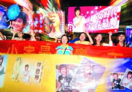 為了見到偶像,不少歌迷已經(jīng)住進(jìn)了會(huì)展中心,每晚掏出400多元的房費(fèi),只為了可以在“超女”們進(jìn)出房間的間隙見到偶像。有的“粉絲”已經(jīng)在這里住了十多天了,而且每天不斷有全國各地的“粉絲”入住,酒店干脆打出橫幅:“歡迎《超級(jí)女聲》來自全國各地的‘超級(jí)粉絲’”。更有神通廣大的粉絲,住到了“金牛座”里,但他們說不會(huì)影響到“超女”們的生活。在會(huì)展中心一路可以看到“筆迷”舉著周筆暢的大幅畫像出去拉票,前臺(tái)不斷有“涼粉”們登記入住。據(jù)說“玉米”是最瘋狂的“粉絲”,他們的身影在會(huì)展中心很少見,在街頭比較常見。