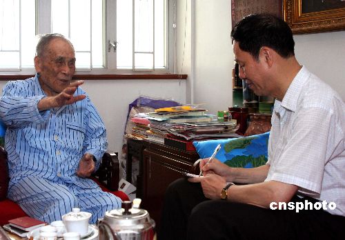 紀念抗日戰(zhàn)爭勝利六十周年,九十五歲的全國僑聯(lián)副主席、香港文化促進會會長、香港佛教文化產業(yè)主席莊世平接受中新社記者專訪,談抗戰(zhàn)時的經歷。作者:鄧慶樂 梁今