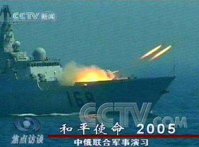 中新網(wǎng)8月26日電 據(jù)中央電視臺焦點訪談報道,從8月18日到8月25日,“和平使命——2005”中俄聯(lián)合軍事演習在俄羅斯的符拉迪沃斯托克和中國的山東半島及其附近海域進行。這次軍事演習是中俄首次聯(lián)合軍演,為期八天分為三個階段。這次聯(lián)合軍事演習主要演練兩軍共同打擊國際恐怖主義、極端主義和分裂主義,應對危機的組織協(xié)同。演習不針對第三方,不涉及第三國利益,不對任何國家構成威脅。