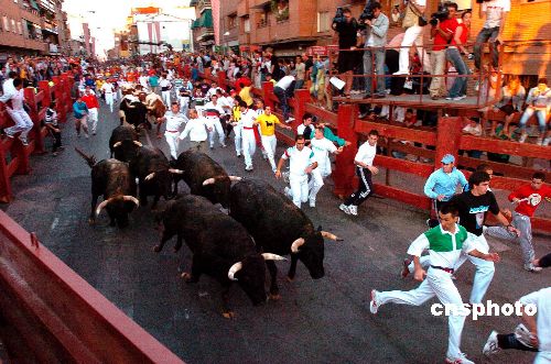 8月26日,第二屆馬德里圣·塞巴斯帝安奔牛節(jié)開(kāi)幕。大約有2200名愛(ài)好者參加了這一活動(dòng).他們?cè)趦疵偷墓V八纳⒈继,以此尋求刺激。?人在活動(dòng)中受了輕傷4人被送往當(dāng)?shù)氐尼t(yī)院。據(jù)悉,該活動(dòng)將持續(xù)到8月31日。作者:Ic/cnsphoto