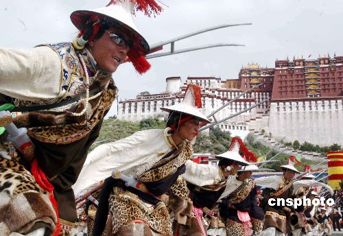 圖:拉薩舉行西藏自治區(qū)成立四十周年游行彩排活動