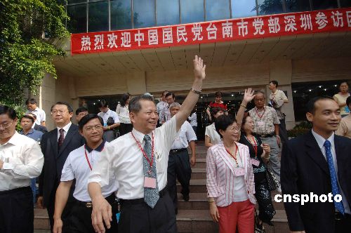 八月二十八日上午,由莊松旺主委率領(lǐng)的中國國民黨臺南市黨部參訪團一行來到深圳南嶺村社區(qū)居委會、大芬油畫村、布吉農(nóng)產(chǎn)品批發(fā)市場參觀。圖為中國國民黨臺南市黨部主委莊松旺向深圳南嶺村社區(qū)居民揮手致意。作者:聞子