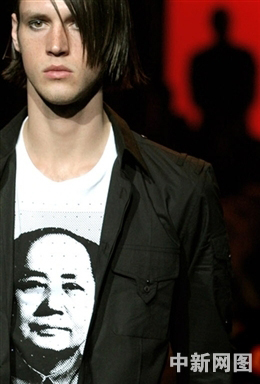 1月17日,在意大利米蘭舉行的2006/07秋冬男裝發(fā)布會上,一名模特在展示英國設(shè)計師John Richmond的作品。