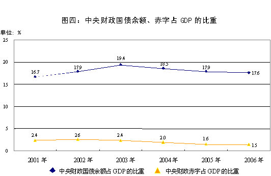 根據(jù)上述總體思路,2006年預算的主要指標安排如下:中央財政總收入19272.04億元,比2005年增加2022.25億元,增長11.7%。其中,中央本級收入18520.3億元,比2005年增加1984.36億元,增長12%。中央財政總支出22222.04億元,比2005年增加1972.63億元,增長9.7%。其中,中央本級支出9525億元,比2005年增加749.27億元,增長8.5%;對地方稅收返還和補助支出12697.04億元,比2005年增加1223.36億元,增長10.7%。中央財政收支相抵,赤字2950億元,比2005年預算減少50億元,財政赤字占GDP的比重預計進一步下降到1.5%。2006年,中央財政安排國債項目資金600億元,比2005年減少200億元(其中取消代地方政府發(fā)行國債100億元),同時增加中央預算內(nèi)經(jīng)常性建設投資100億元。中央財政國債余額35568億元,比2005年同口徑增加2954億元。匯總中央和地方財政收支安排,2006年全國財政收入35423.38億元,增加3795.4億元,增長12%;全國財政支出38373.38億元,增加4665.36億元,增長13.8%。