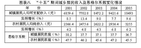 (八)人民生活進(jìn)一步改善。城鎮(zhèn)居民人均可支配收入和農(nóng)村居民人均純收入分別實(shí)際增長(zhǎng)9.6%和6.2%。社會(huì)消費(fèi)品零售總額增長(zhǎng)12.9%。城鎮(zhèn)新增就業(yè)970萬(wàn)人,城鎮(zhèn)登記失業(yè)率4.2%。社會(huì)保障覆蓋范圍繼續(xù)擴(kuò)大,“兩個(gè)確!边M(jìn)一步鞏固,城鄉(xiāng)困難群眾基本生活得到保障。全國(guó)絕大多數(shù)地方已基本實(shí)現(xiàn)國(guó)有企業(yè)下崗職工基本生活保障向失業(yè)保險(xiǎn)并軌,東北三省完善城鎮(zhèn)社會(huì)保障體系試點(diǎn)順利實(shí)施。