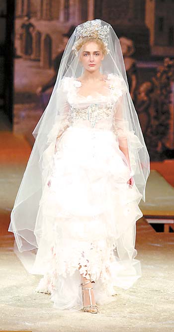 一般來說,國際頂尖品牌較少專場發(fā)布旗下的婚紗禮服,只會在品牌的高級定制時裝秀上讓一兩套全新設(shè)計的婚紗作為壓軸之作而出現(xiàn)。但恰恰是這少量的婚紗精品,吸引了全世界準(zhǔn)新娘的關(guān)注。2006年,大牌設(shè)計師將國際婚紗時尚定義為“奢華復(fù)古”的維多利亞風(fēng)格。
