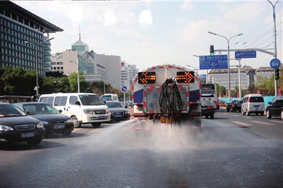 環(huán)衛(wèi) 西單灑40噸水降溫