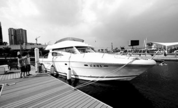 環(huán)渤海地區(qū)游艇業(yè)近年來迅速發(fā)展。天津市依托旅游業(yè),在濱海新區(qū)中心漁港休閑港灣區(qū)興建1000個游艇專屬泊位,進一步加速游艇產(chǎn)業(yè)的發(fā)展。天津灣、東麗湖等10多個港口、湖泊水域也都建立了游艇泊位及水上項目基地。圖為8月17日一艘游艇?吭谛陆ǔ傻奶鞛秤瓮Тa頭! ⌒氯A社記者 劉海峰攝